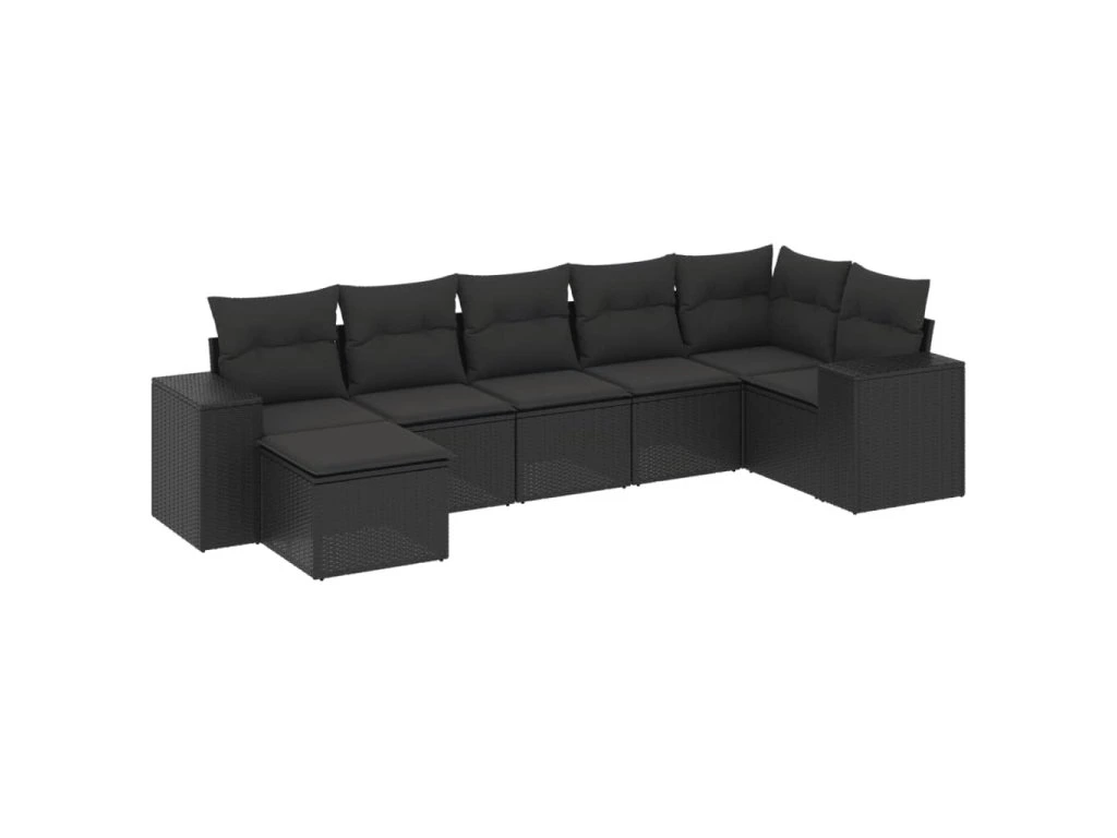7dílná zahradní sedací souprava s poduškami černá polyratan 3255212