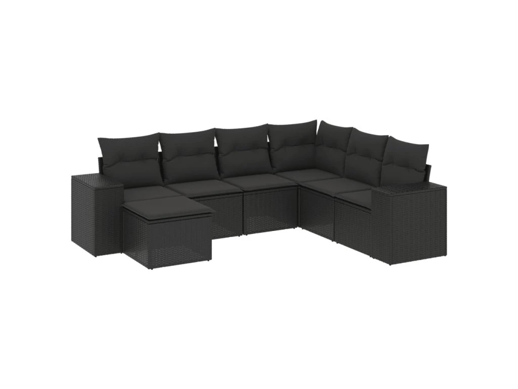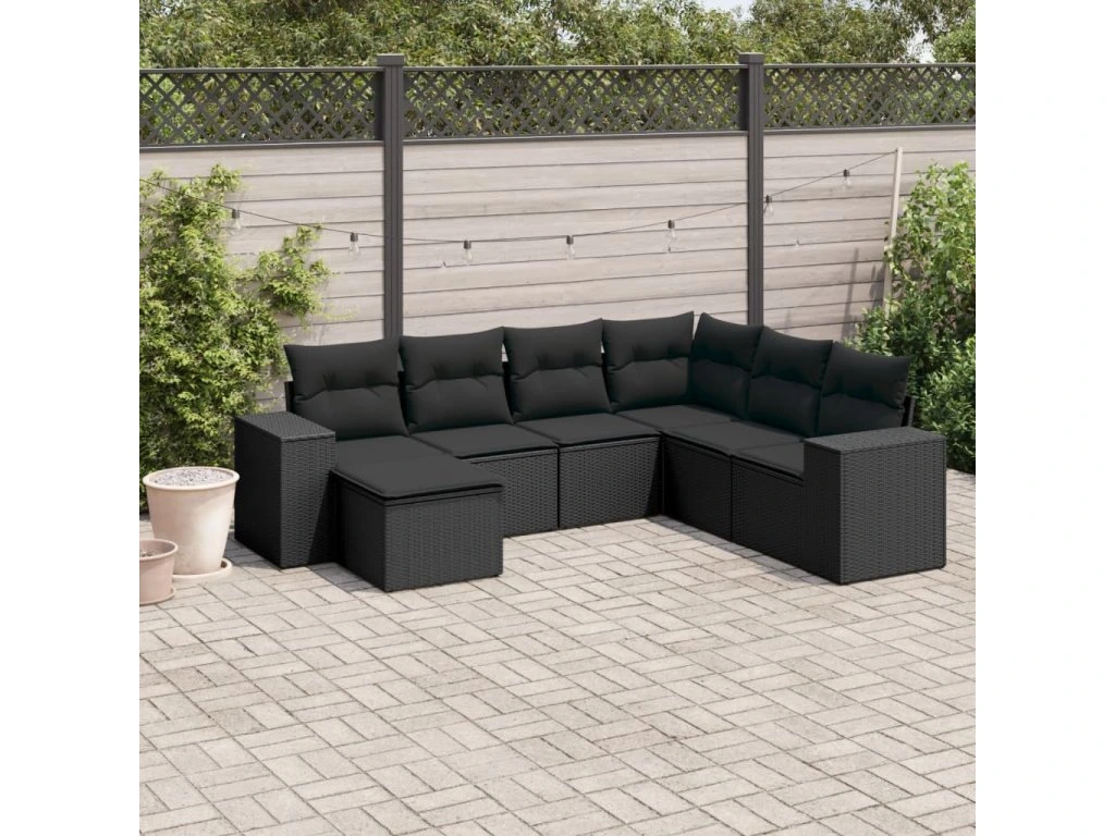 7dílná zahradní sedací souprava s poduškami černá polyratan 3255232