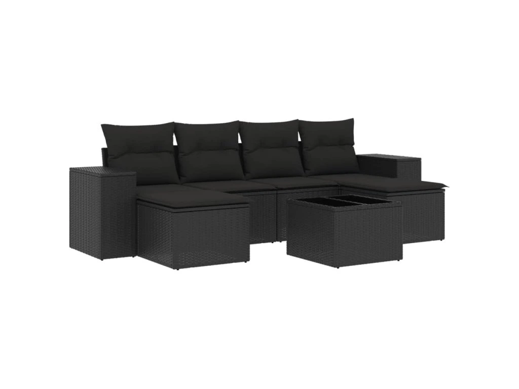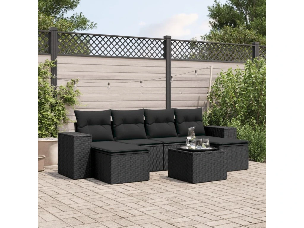 7dílná zahradní sedací souprava s poduškami černá polyratan 3255262
