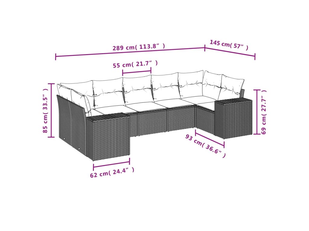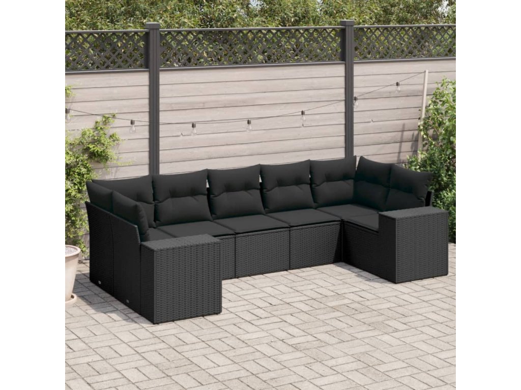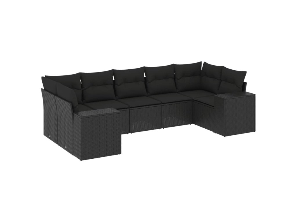 7dílná zahradní sedací souprava s poduškami černá polyratan 3255322