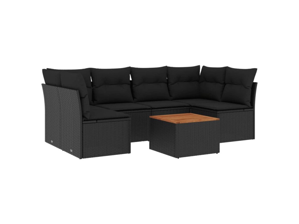 7dílná zahradní sedací souprava s poduškami černá polyratan 3255887