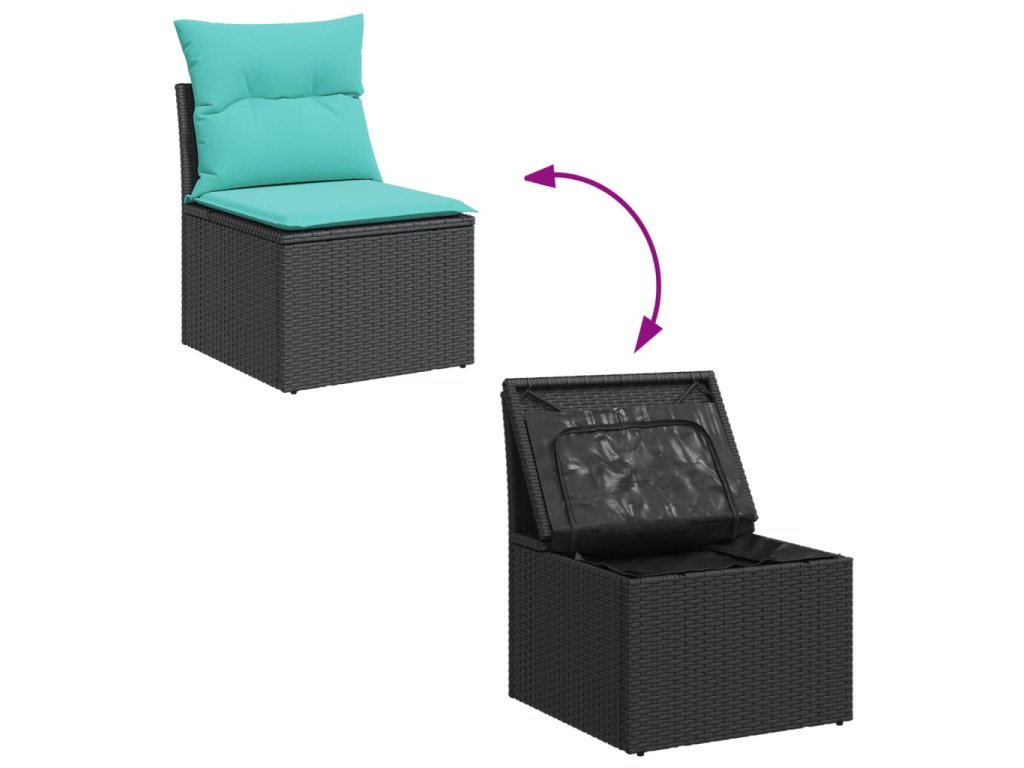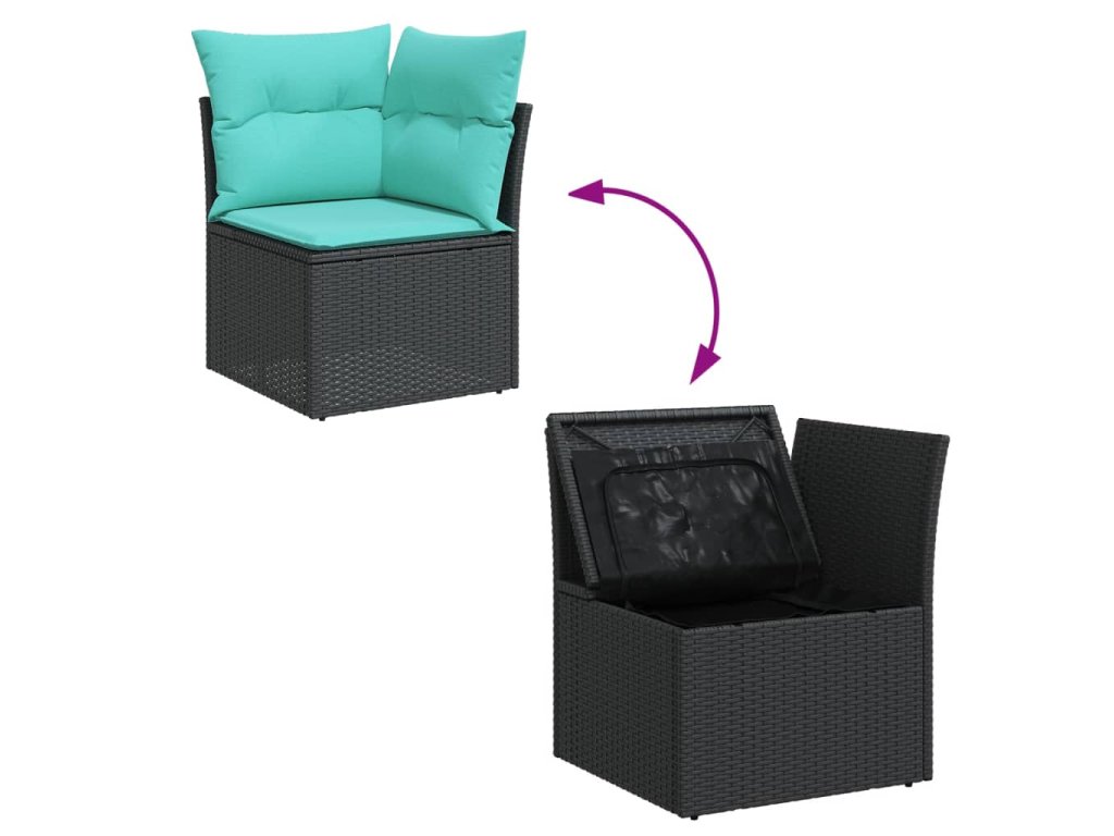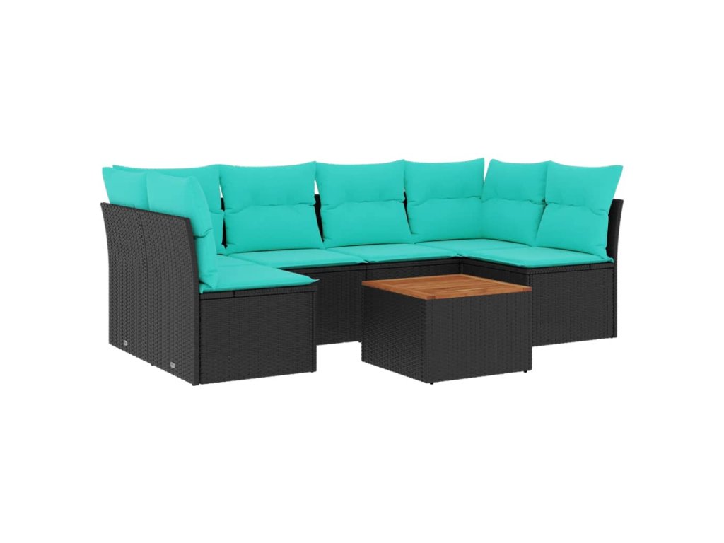 7dílná zahradní sedací souprava s poduškami černá polyratan 3255889