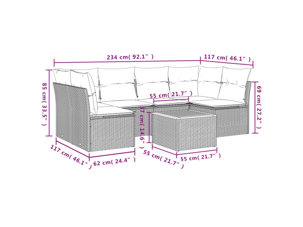 Tato zahradní sedací souprava je dokonalým doplňkem vaší zahrady, terasy nebo dvorku a poskytne vám pohodlné a příjemné místo, kde si můžete povídat s rodinou a přáteli nebo jen tak odpočívat a užívat si pobyt venku.