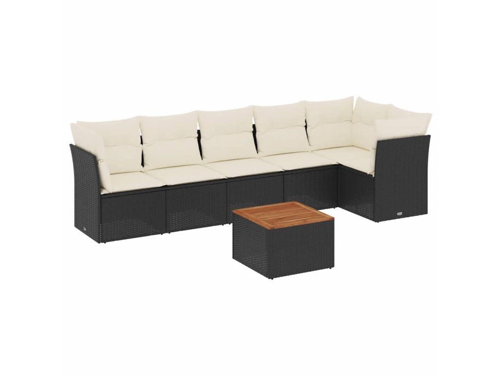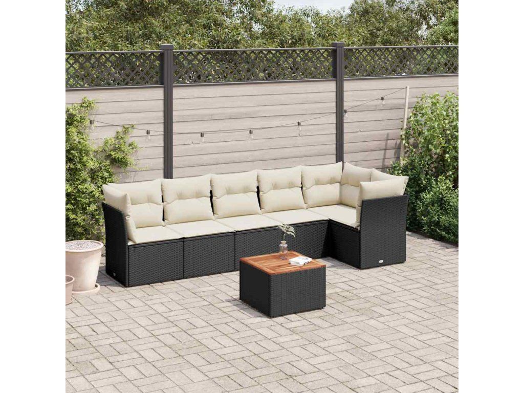 7dílná zahradní sedací souprava s poduškami černá polyratan 3255979