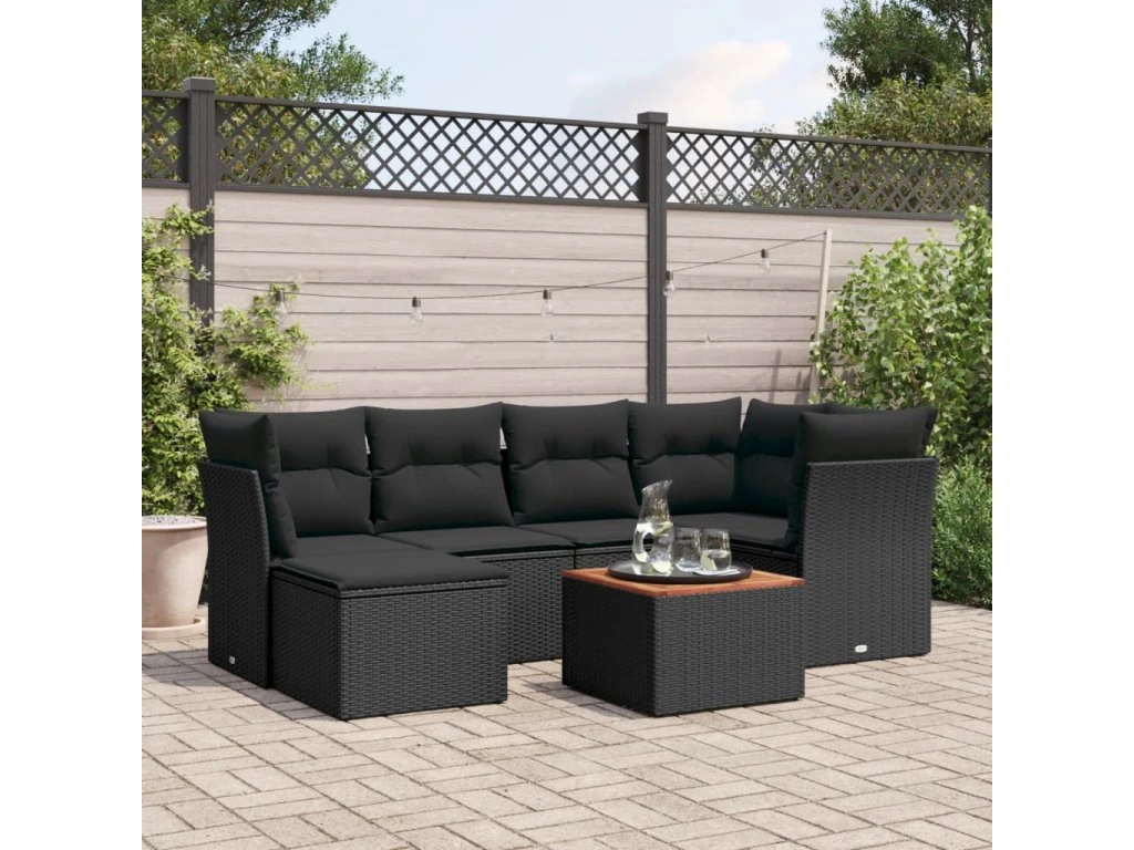 7dílná zahradní sedací souprava s poduškami černá polyratan 3256076
