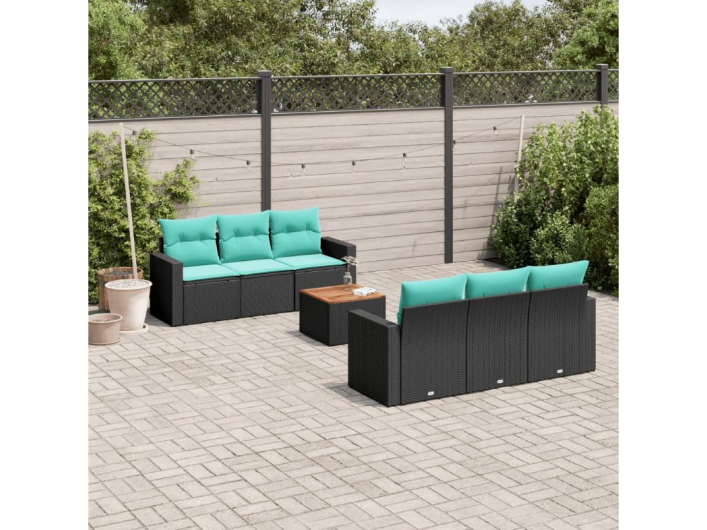 7dílná zahradní sedací souprava s poduškami černá polyratan 3256344