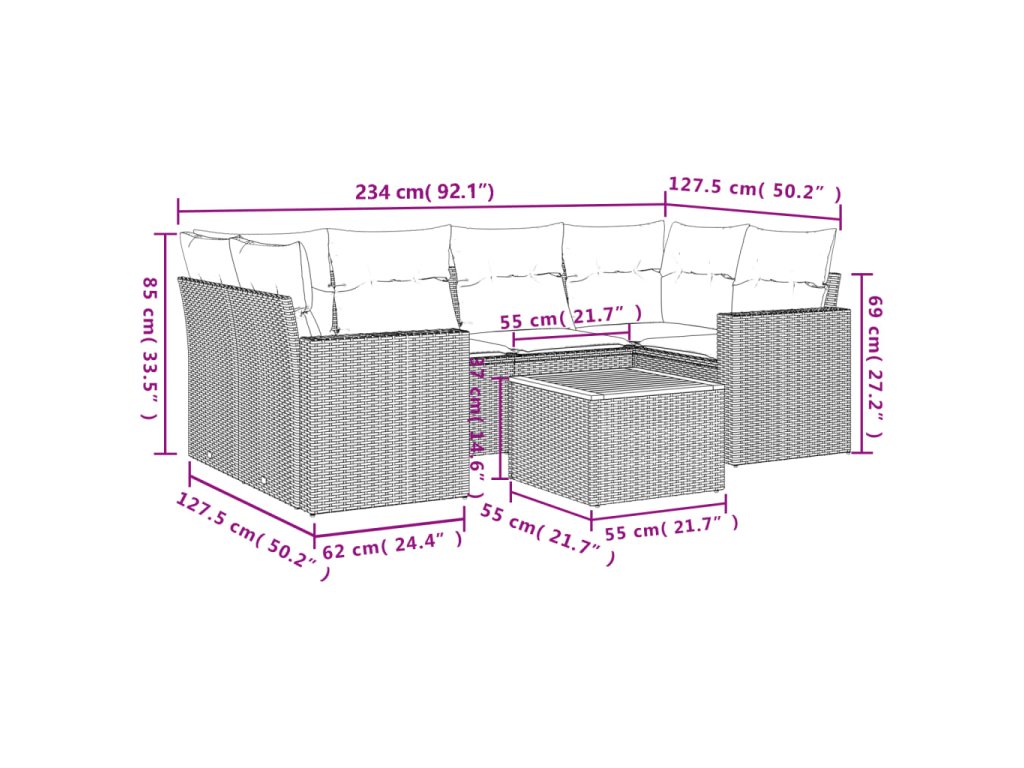 Tato zahradní sedací souprava je dokonalým doplňkem vaší zahrady, terasy nebo dvorku a poskytne vám pohodlné a příjemné místo, kde si můžete povídat s rodinou a přáteli nebo jen tak odpočívat a užívat si pobyt venku.