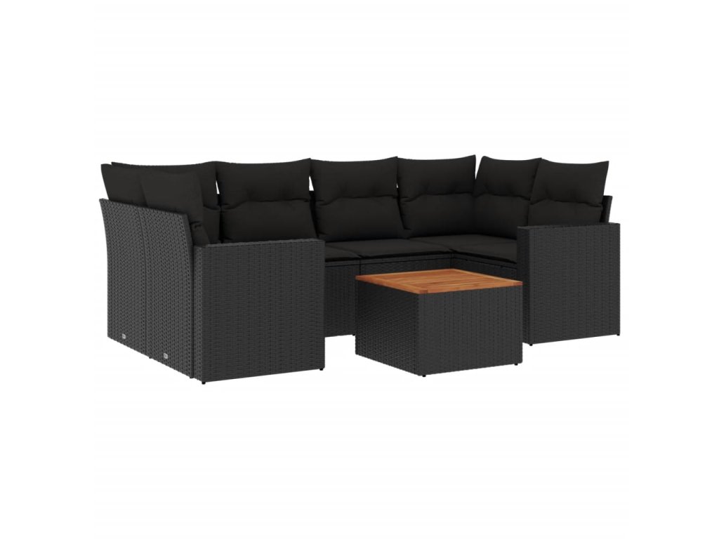 7dílná zahradní sedací souprava s poduškami černá polyratan 3256349