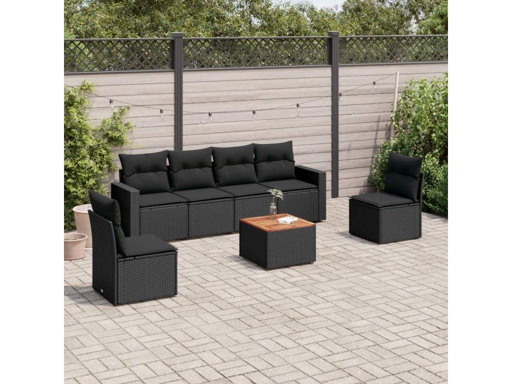 7dílná zahradní sedací souprava s poduškami černá polyratan 3256398
