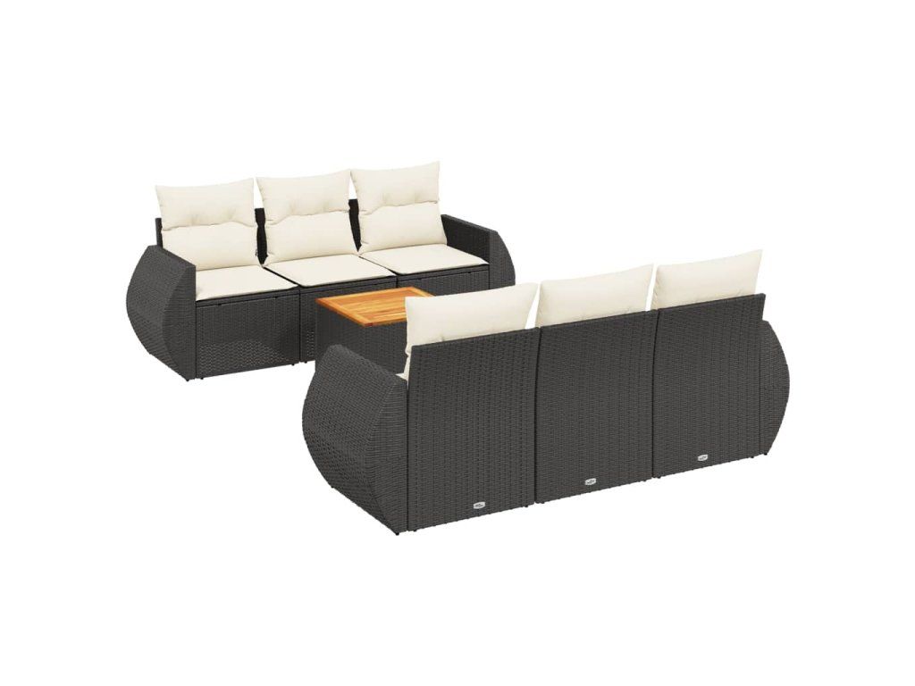 7dílná zahradní sedací souprava s poduškami černá polyratan 3257225