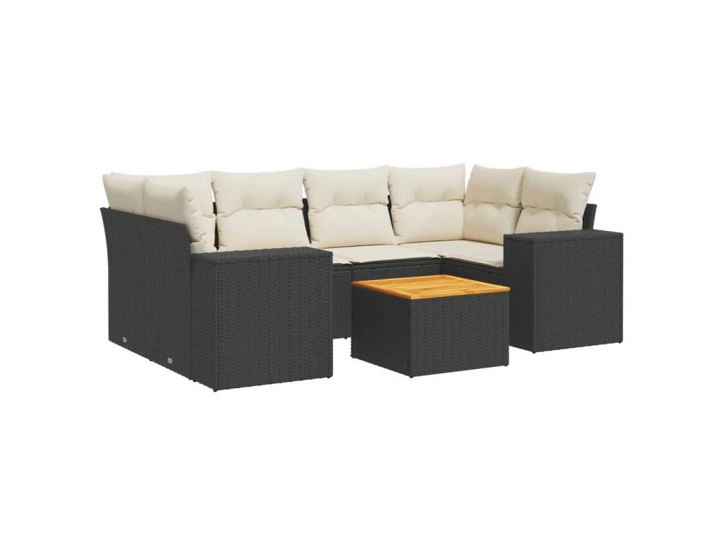 7dílná zahradní sedací souprava s poduškami černá polyratan 3257673