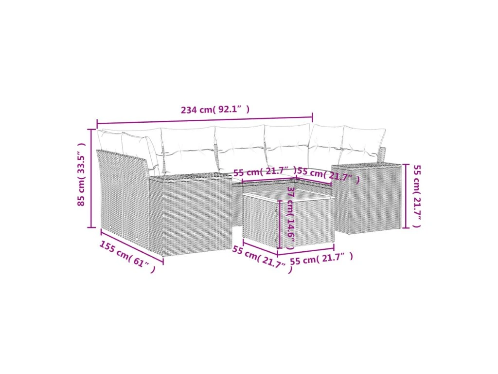 Tato zahradní sedací souprava je dokonalým doplňkem vaší zahrady, terasy nebo dvorku a poskytne vám pohodlné a příjemné místo, kde si můžete povídat s rodinou a přáteli nebo jen tak odpočívat a užívat si pobyt venku.