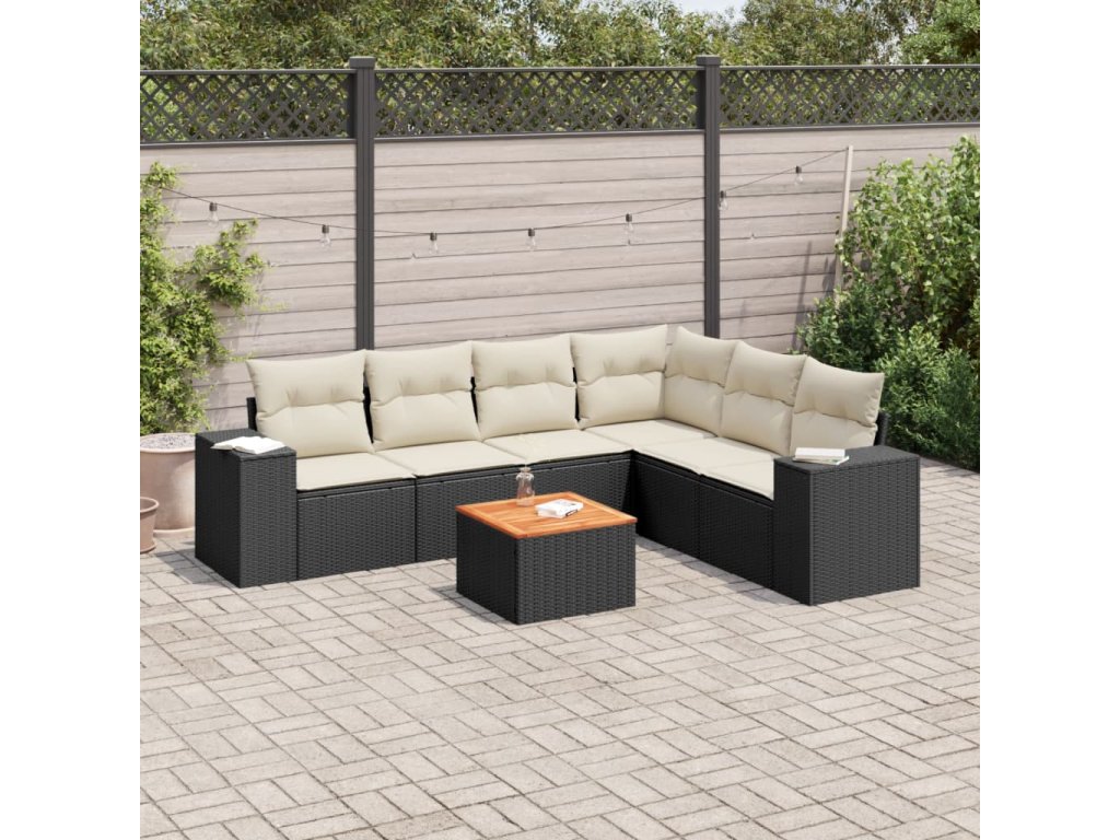 7dílná zahradní sedací souprava s poduškami černá polyratan 3257792