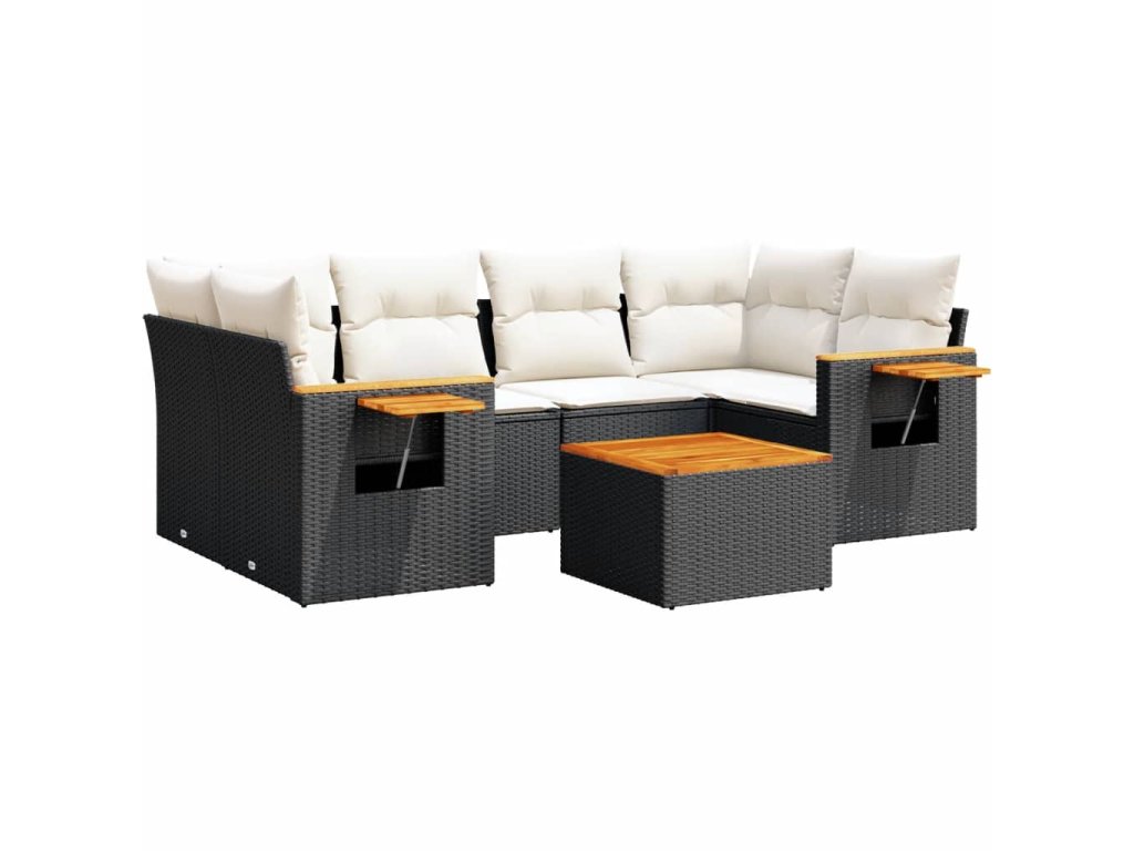7dílná zahradní sedací souprava s poduškami černá polyratan 3259039