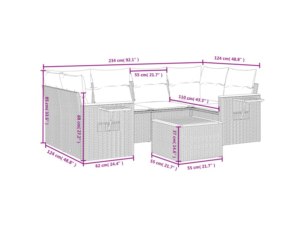 Tato zahradní sedací souprava je dokonalým doplňkem vaší zahrady, terasy nebo dvorku a poskytne vám pohodlné a příjemné místo, kde si můžete povídat s rodinou a přáteli nebo jen tak odpočívat a užívat si pobyt venku.