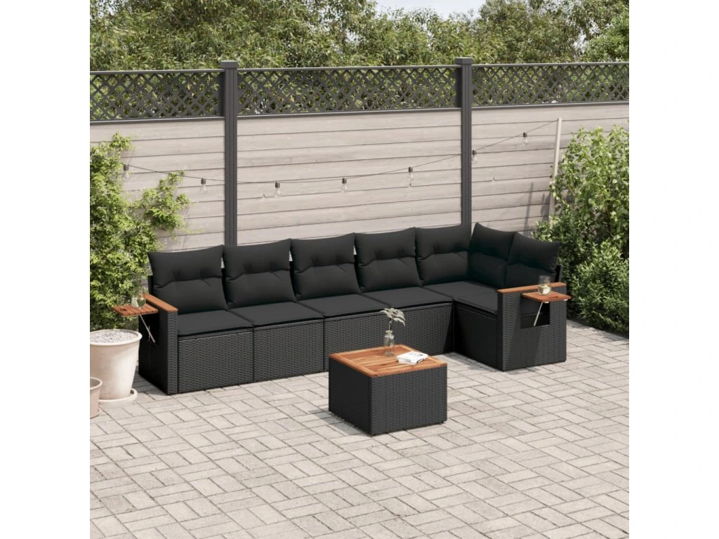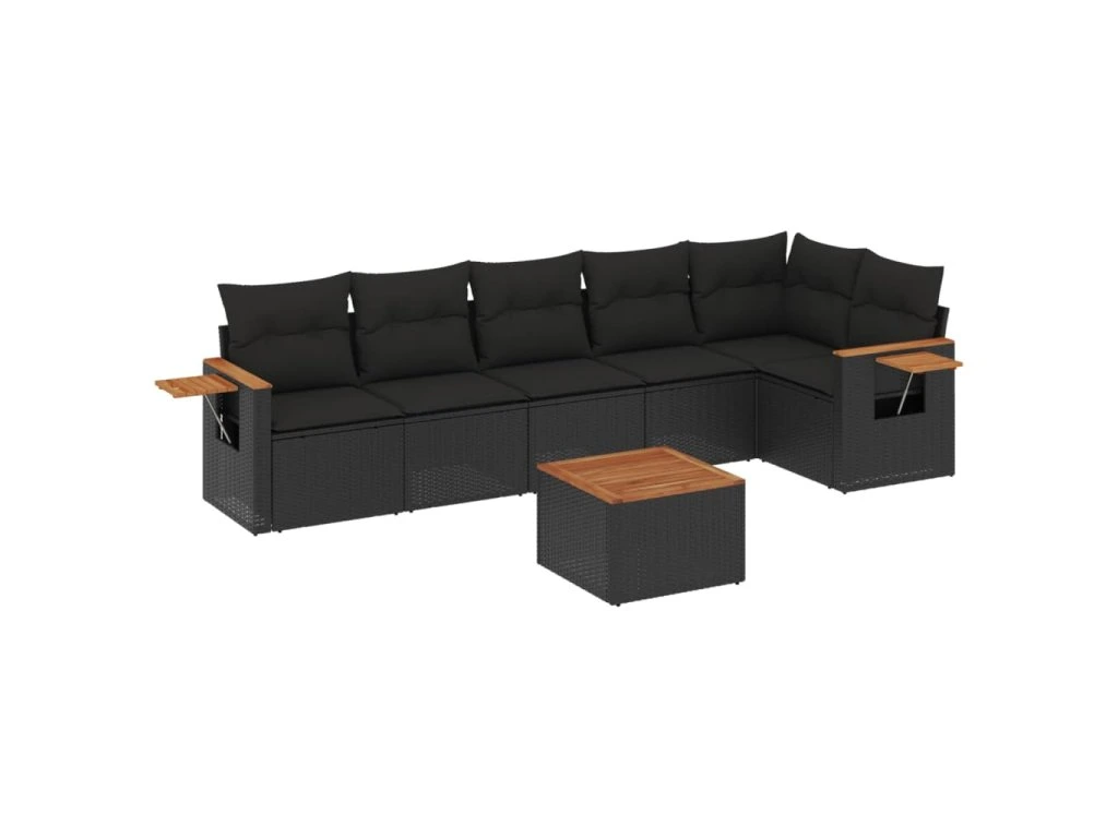 7dílná zahradní sedací souprava s poduškami černá polyratan 3259234
