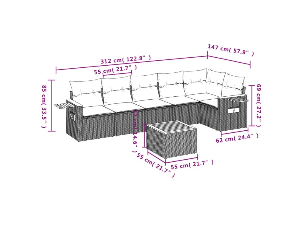 Tato zahradní sedací souprava je dokonalým doplňkem vaší zahrady, terasy nebo dvorku a poskytne vám pohodlné a příjemné místo, kde si můžete povídat s rodinou a přáteli nebo jen tak odpočívat a užívat si pobyt venku.
