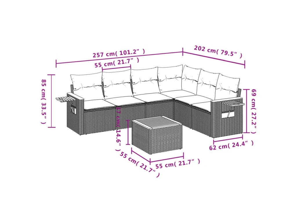 Tato zahradní sedací souprava je dokonalým doplňkem vaší zahrady, terasy nebo dvorku a poskytne vám pohodlné a příjemné místo, kde si můžete povídat s rodinou a přáteli nebo jen tak odpočívat a užívat si pobyt venku.