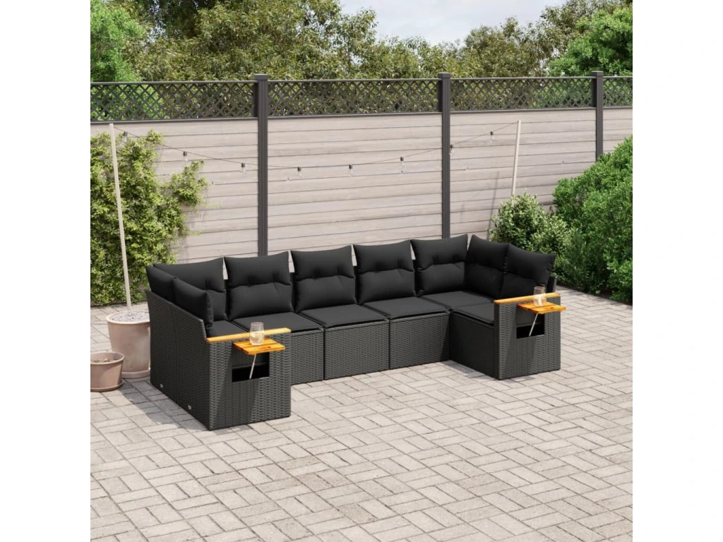 7dílná zahradní sedací souprava s poduškami černá polyratan 3259507