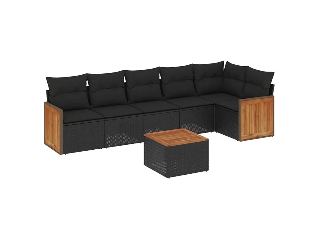 7dílná zahradní sedací souprava s poduškami černá polyratan 3260074