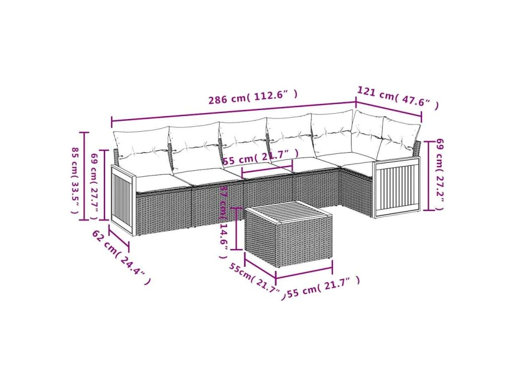 Tato zahradní sedací souprava je dokonalým doplňkem vaší zahrady, terasy nebo dvorku a poskytne vám pohodlné a příjemné místo, kde si můžete povídat s rodinou a přáteli nebo jen tak odpočívat a užívat si pobyt venku.