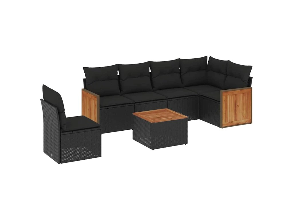 7dílná zahradní sedací souprava s poduškami černá polyratan 3260102