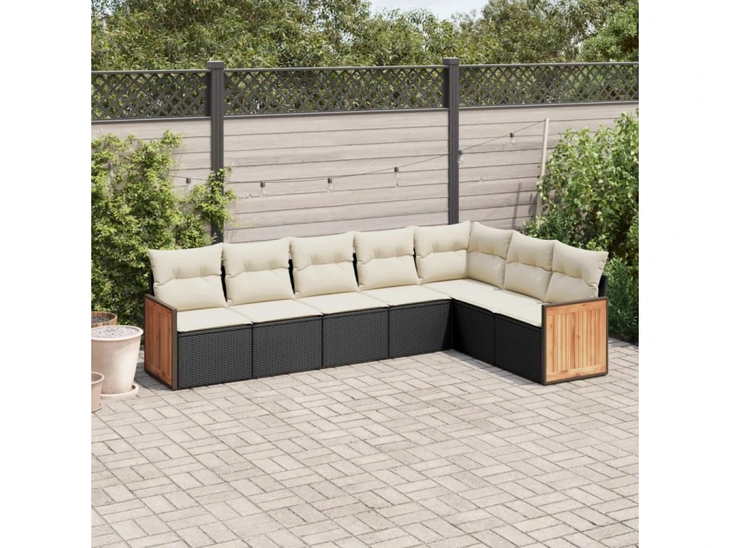 7dílná zahradní sedací souprava s poduškami černá polyratan 3260110