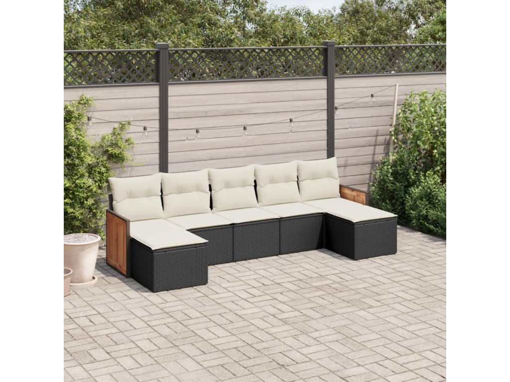 7dílná zahradní sedací souprava s poduškami černá polyratan 3260313