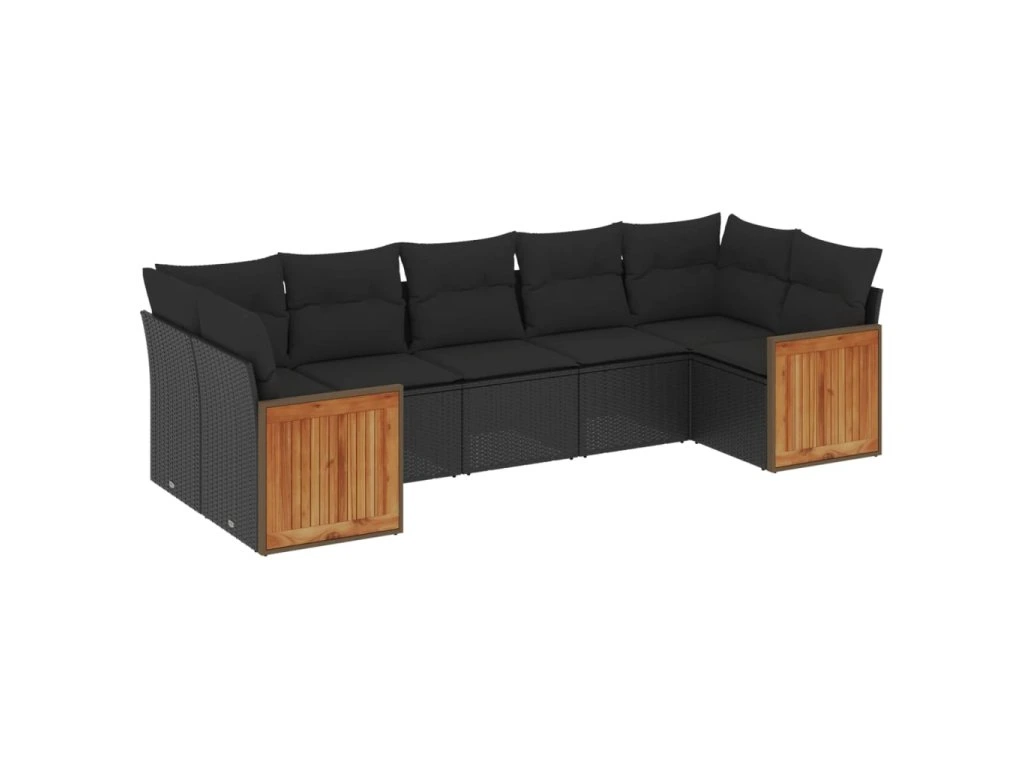 7dílná zahradní sedací souprava s poduškami černá polyratan 3260347