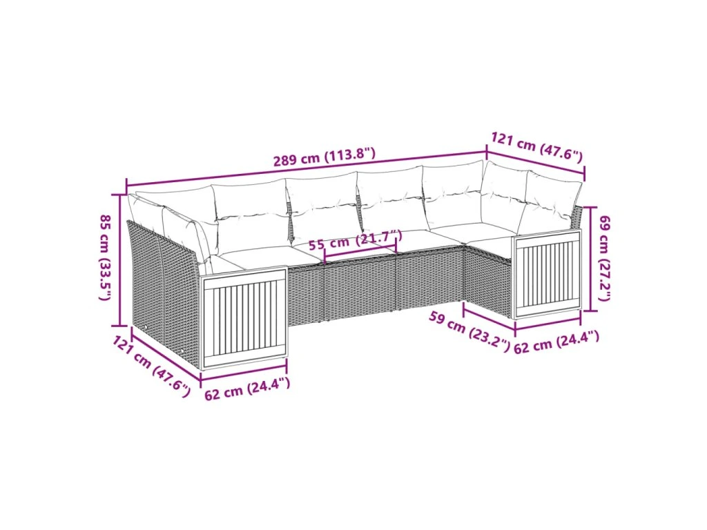 Tato zahradní sedací souprava je dokonalým doplňkem vaší zahrady, terasy nebo dvorku a poskytne vám pohodlné a příjemné místo, kde si můžete povídat s rodinou a přáteli nebo jen tak odpočívat a užívat si pobyt venku.
