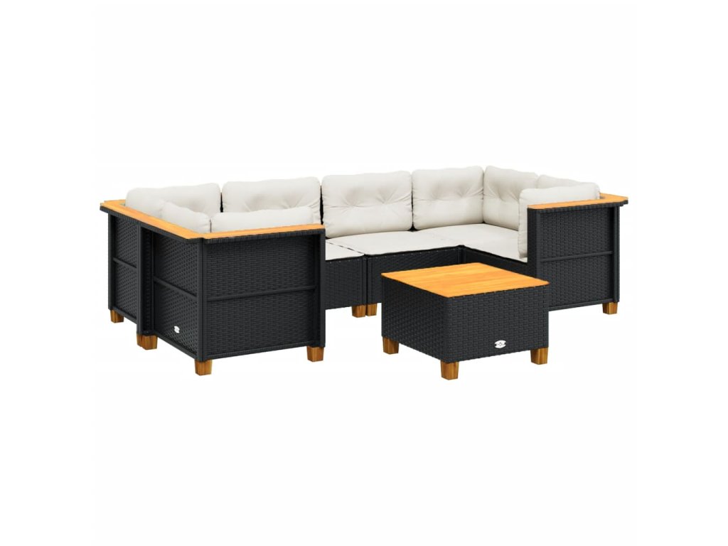 7dílná zahradní sedací souprava s poduškami černá polyratan 3261743