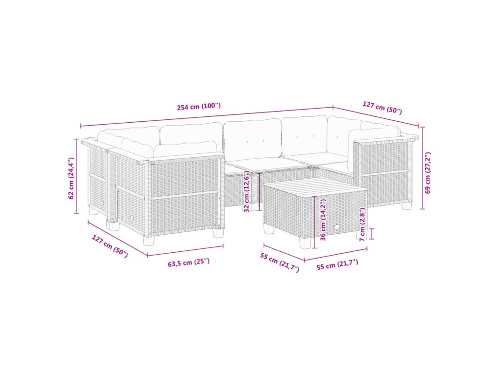 Tato zahradní sedací souprava je dokonalým doplňkem vaší zahrady, terasy nebo dvorku a poskytne vám pohodlné a příjemné místo, kde si můžete povídat s rodinou a přáteli nebo jen tak odpočívat a užívat si pobyt venku.