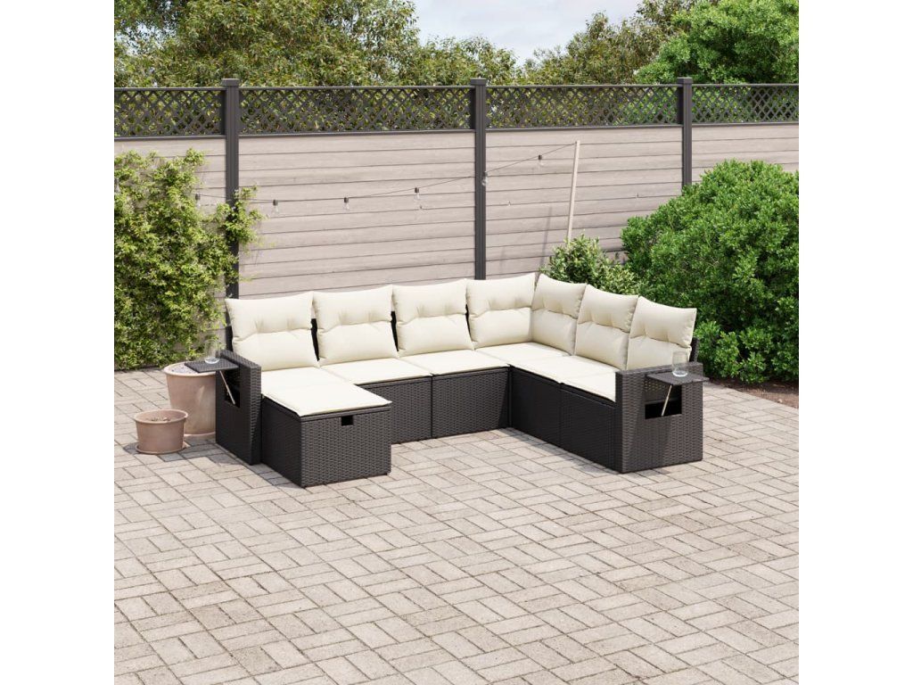 7dílná zahradní sedací souprava s poduškami černá polyratan 3263832
