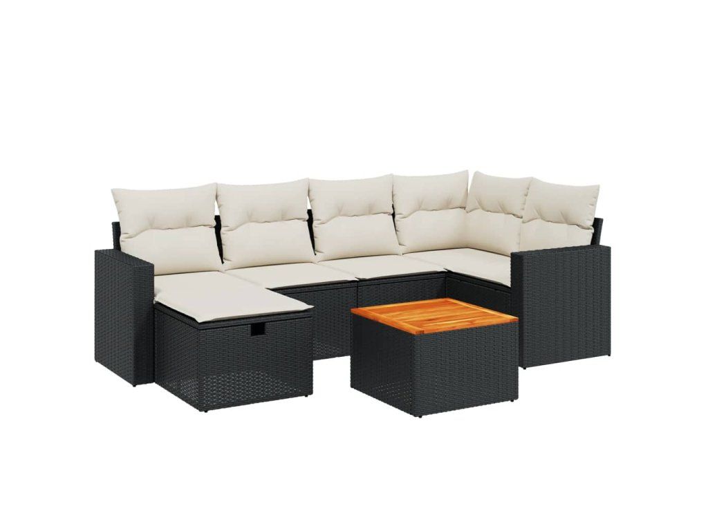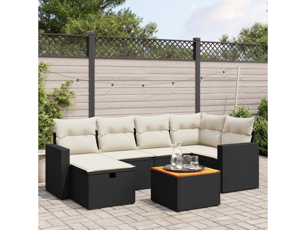 7dílná zahradní sedací souprava s poduškami černá polyratan 3264836