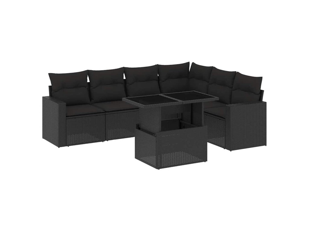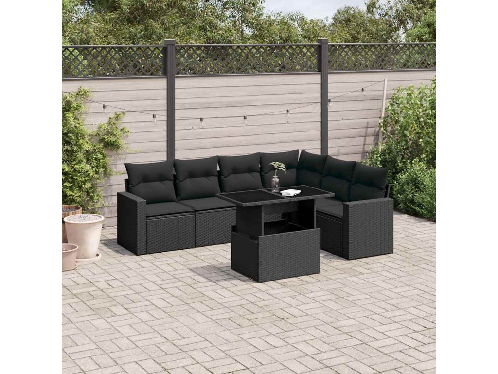 7dílná zahradní sedací souprava s poduškami černá polyratan 3267295