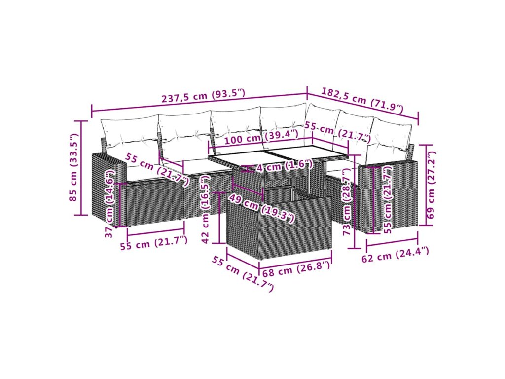 Tato zahradní sedací souprava je dokonalým doplňkem vaší zahrady, terasy nebo dvorku a poskytne vám pohodlné a příjemné místo, kde si můžete povídat s rodinou a přáteli nebo jen tak odpočívat a užívat si pobyt venku.