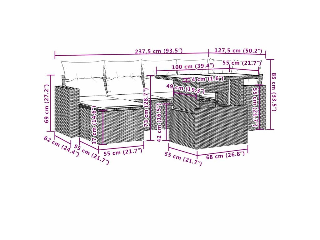 Tato zahradní sedací souprava je dokonalým doplňkem vaší zahrady, terasy nebo dvorku a poskytne vám pohodlné a příjemné místo, kde si můžete povídat s rodinou a přáteli nebo jen tak odpočívat a užívat si pobyt venku.