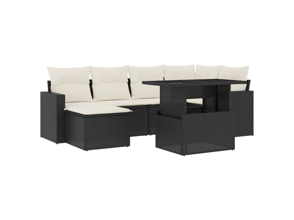 7dílná zahradní sedací souprava s poduškami černá polyratan 3267416