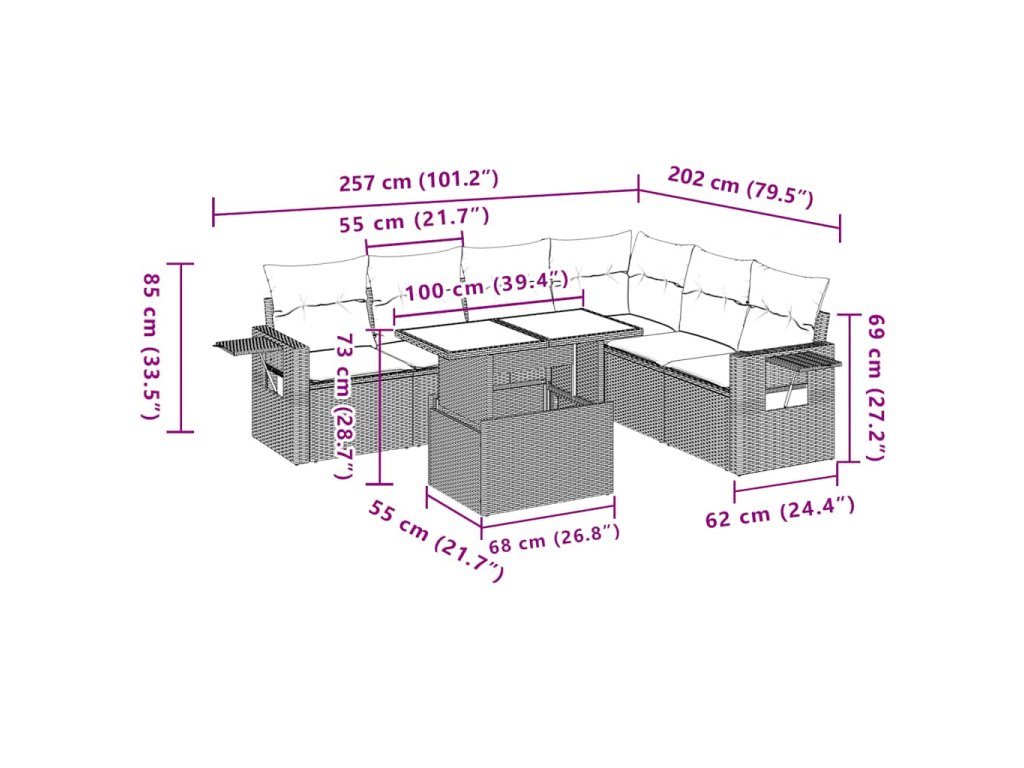 Tato zahradní sedací souprava je dokonalým doplňkem vaší zahrady, terasy nebo dvorku a poskytne vám pohodlné a příjemné místo, kde si můžete povídat s rodinou a přáteli nebo jen tak odpočívat a užívat si pobyt venku.