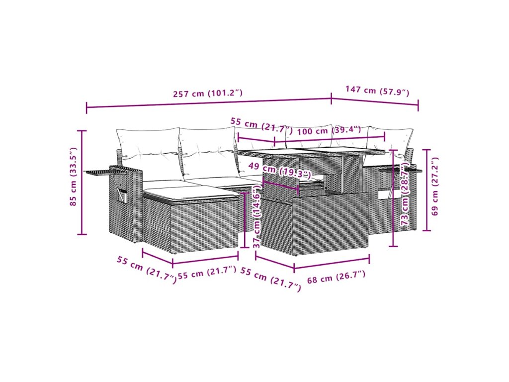 Tato zahradní sedací souprava je dokonalým doplňkem vaší zahrady, terasy nebo dvorku a poskytne vám pohodlné a příjemné místo, kde si můžete povídat s rodinou a přáteli nebo jen tak odpočívat a užívat si pobyt venku.