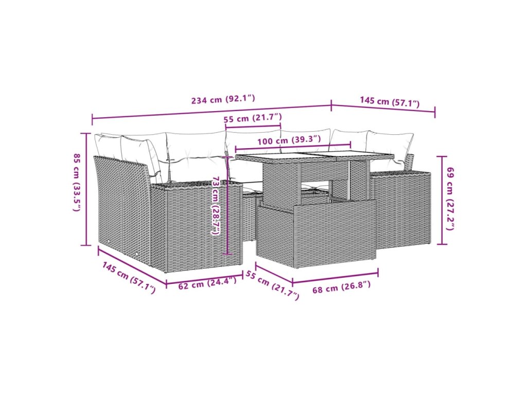 Tato zahradní sedací souprava je dokonalým doplňkem vaší zahrady, terasy nebo dvorku a poskytne vám pohodlné a příjemné místo, kde si můžete povídat s rodinou a přáteli nebo jen tak odpočívat a užívat si pobyt venku.