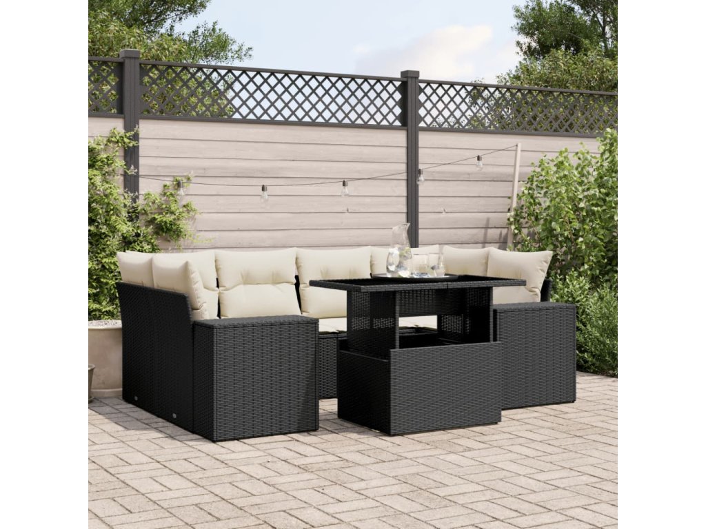 7dílná zahradní sedací souprava s poduškami černá polyratan 3269016