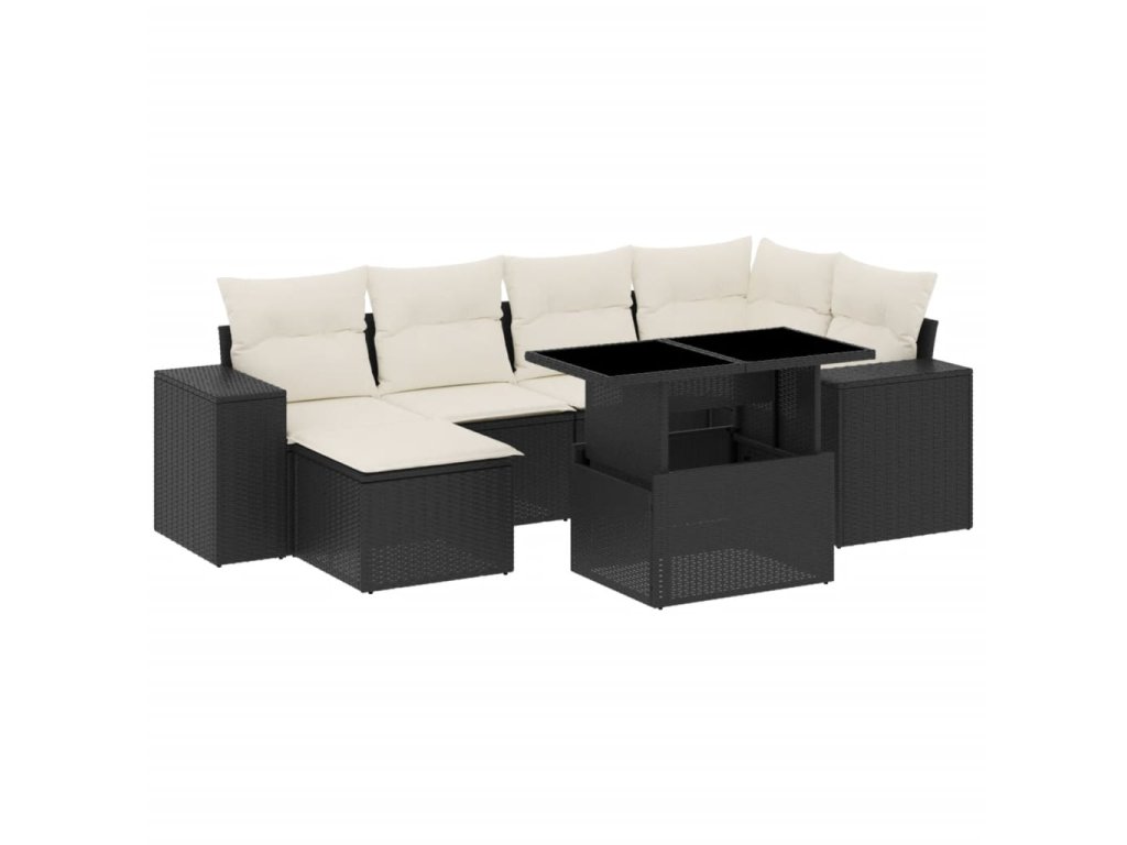 7dílná zahradní sedací souprava s poduškami černá polyratan 3269306
