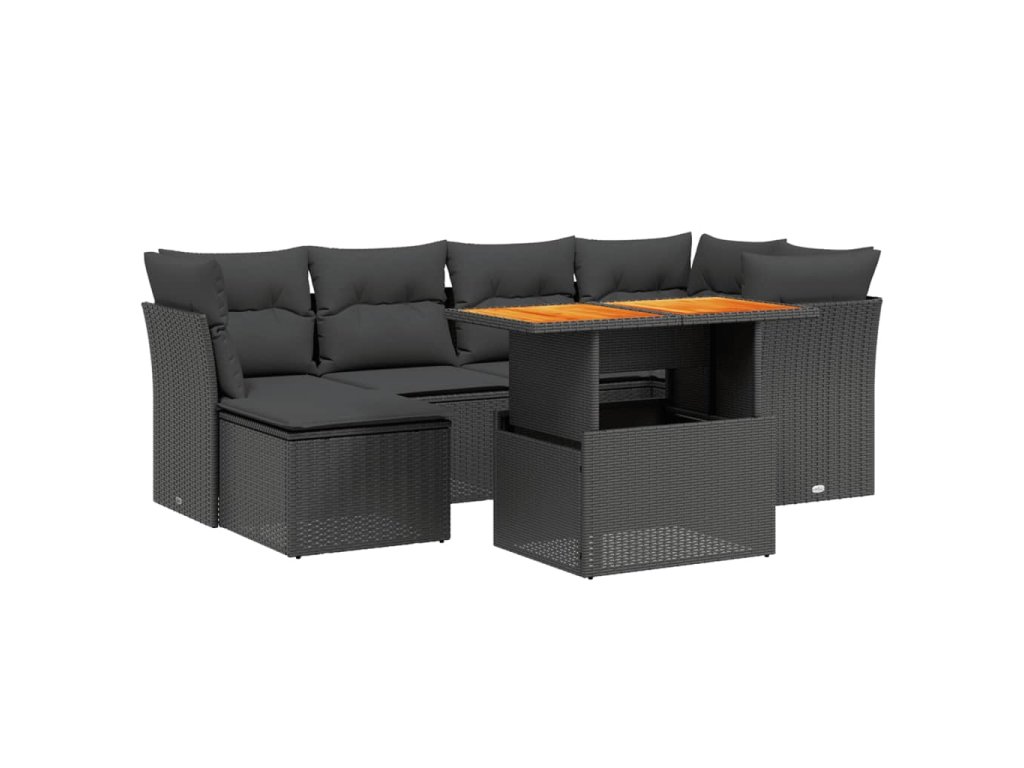 7dílná zahradní sedací souprava s poduškami černá polyratan 3270936