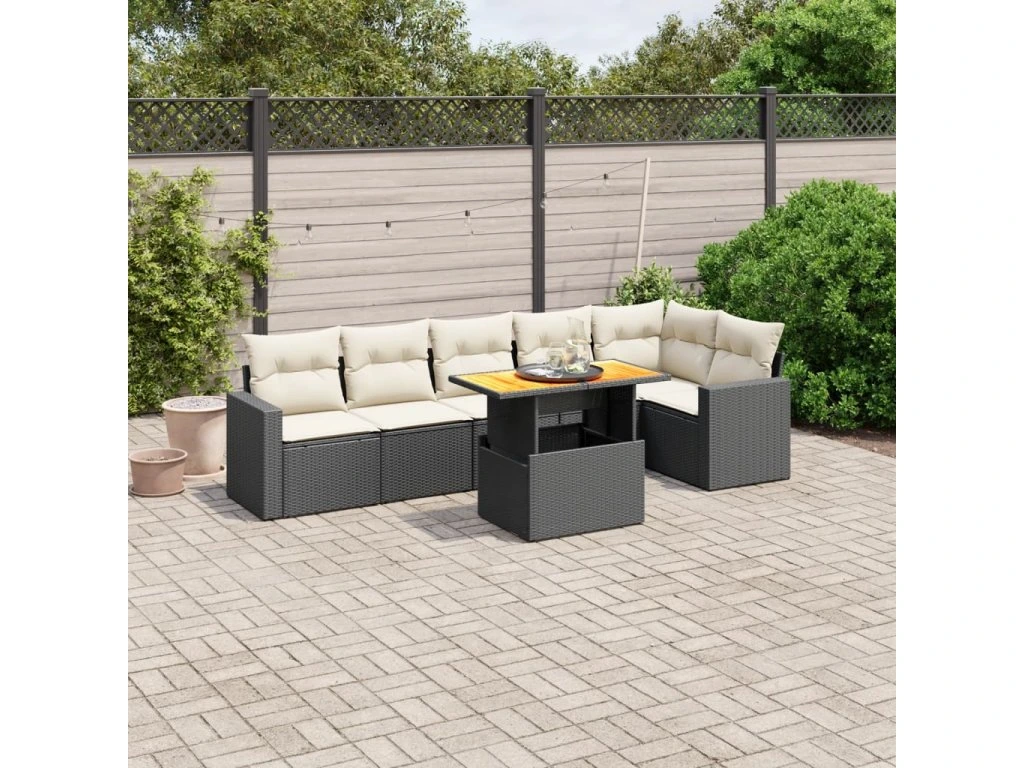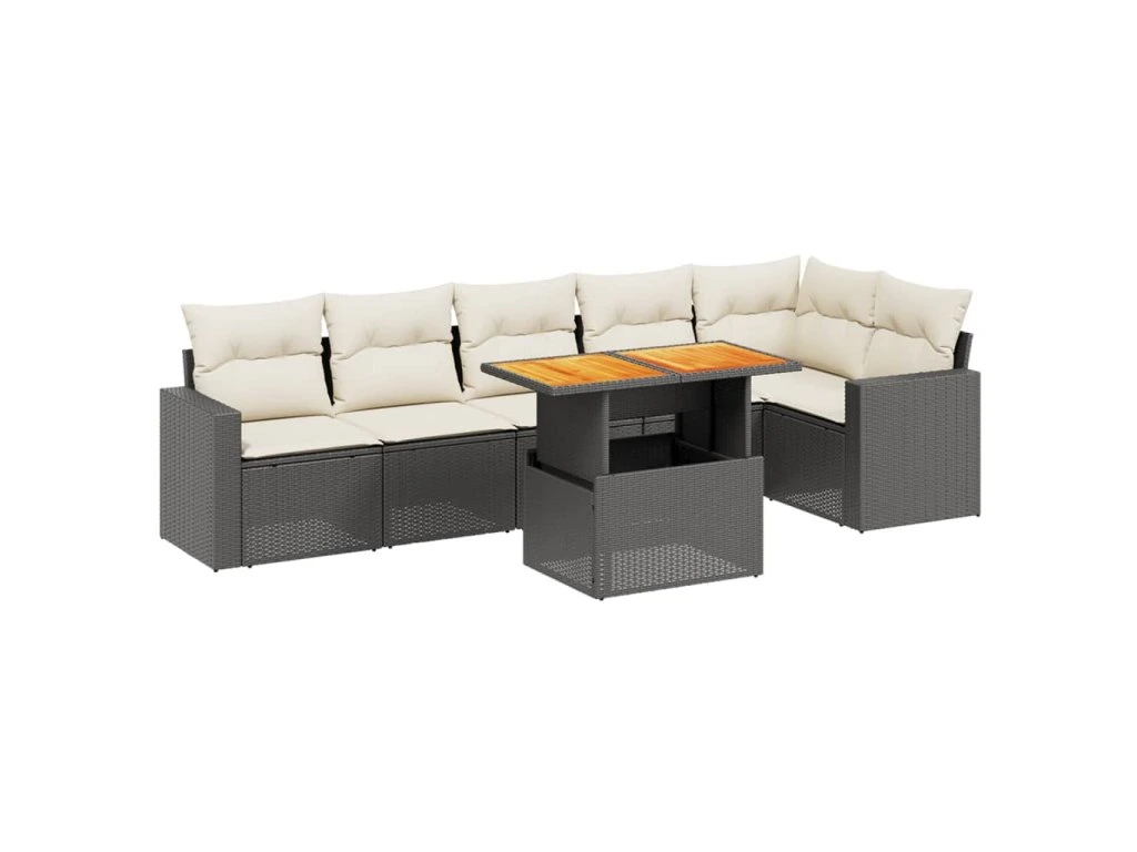 7dílná zahradní sedací souprava s poduškami černá polyratan 3271322