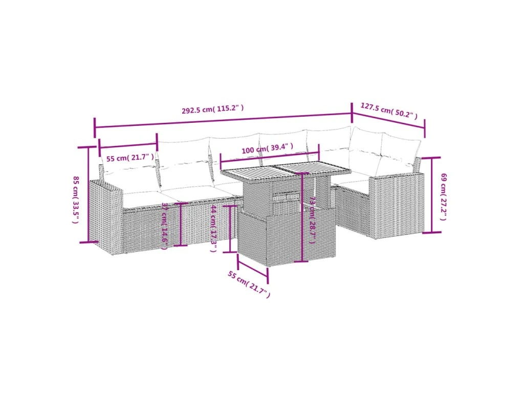 Tato zahradní sedací souprava je dokonalým doplňkem vaší zahrady, terasy nebo dvorku a poskytne vám pohodlné a příjemné místo, kde si můžete povídat s rodinou a přáteli nebo jen tak odpočívat a užívat si pobyt venku.