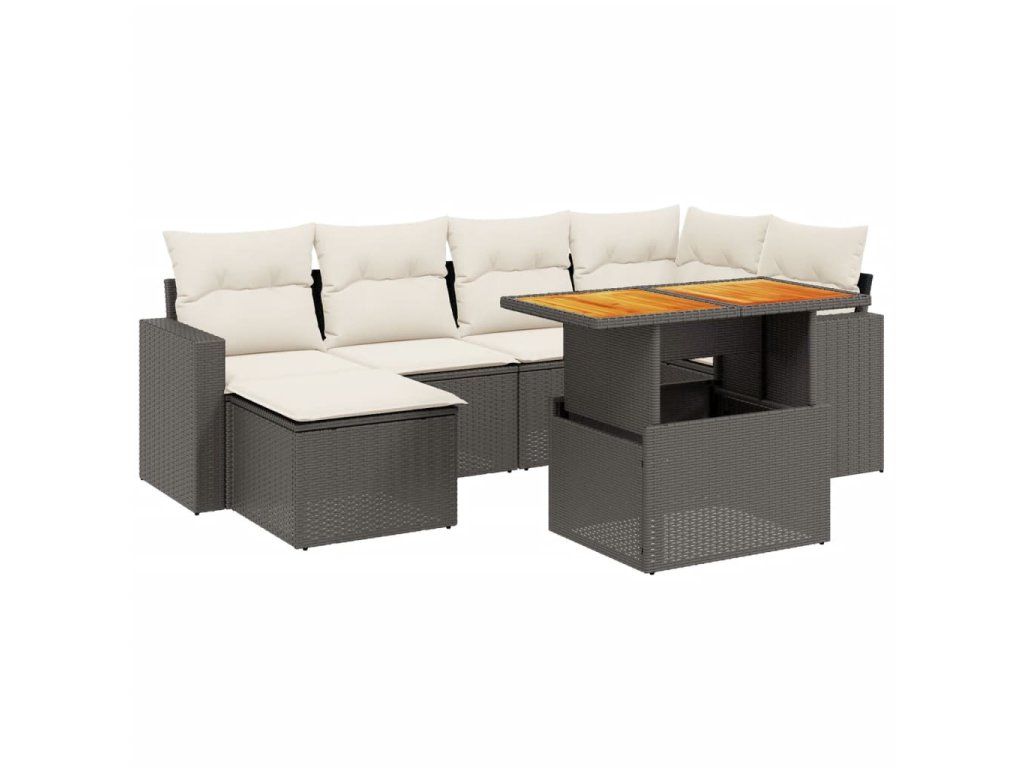7dílná zahradní sedací souprava s poduškami černá polyratan 3271413