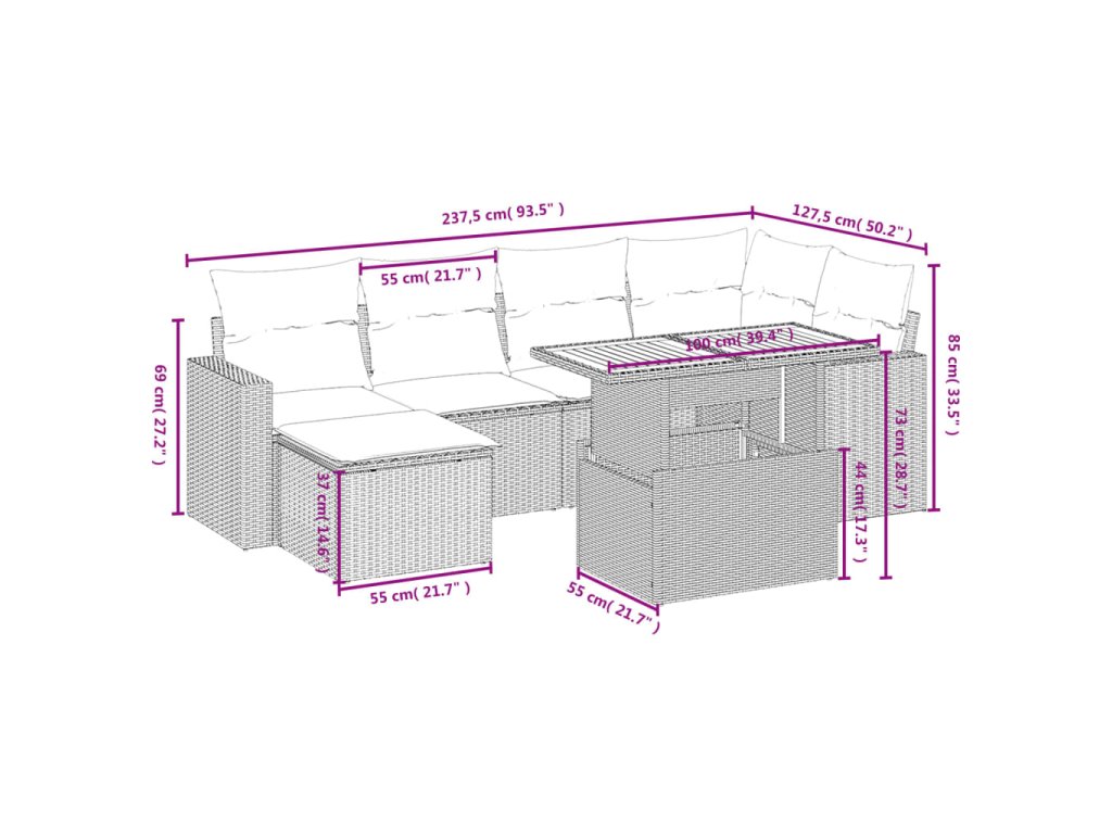 Tato zahradní sedací souprava je dokonalým doplňkem vaší zahrady, terasy nebo dvorku a poskytne vám pohodlné a příjemné místo, kde si můžete povídat s rodinou a přáteli nebo jen tak odpočívat a užívat si pobyt venku.