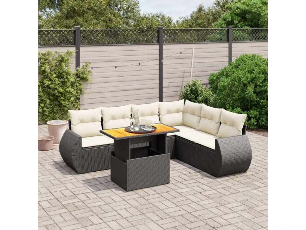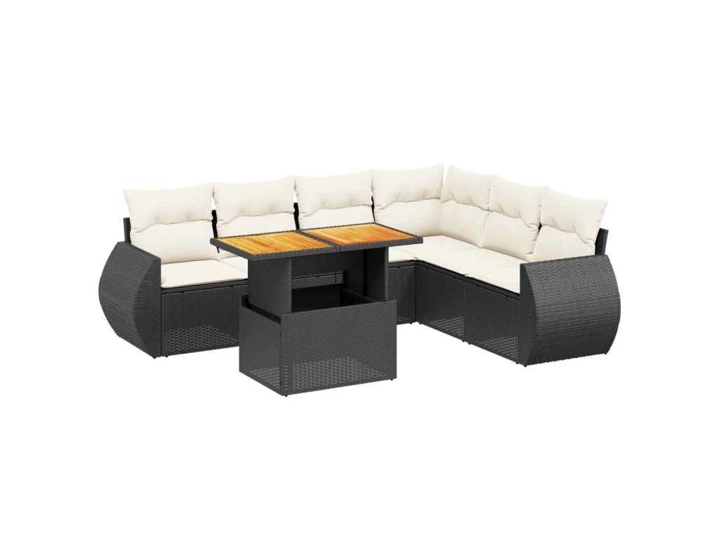 7dílná zahradní sedací souprava s poduškami černá polyratan 3272211