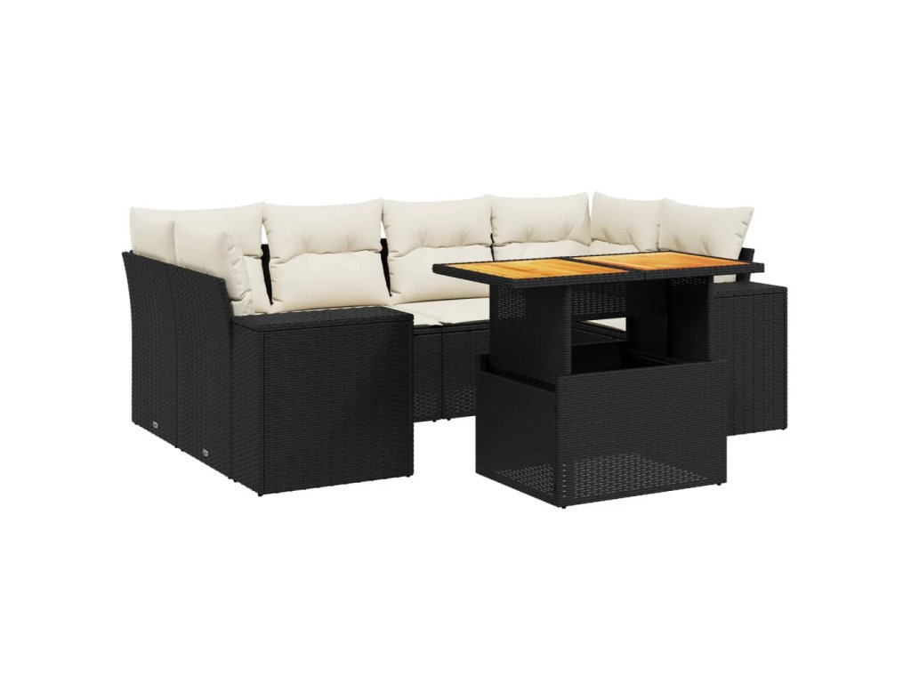 7dílná zahradní sedací souprava s poduškami černá polyratan 3272533